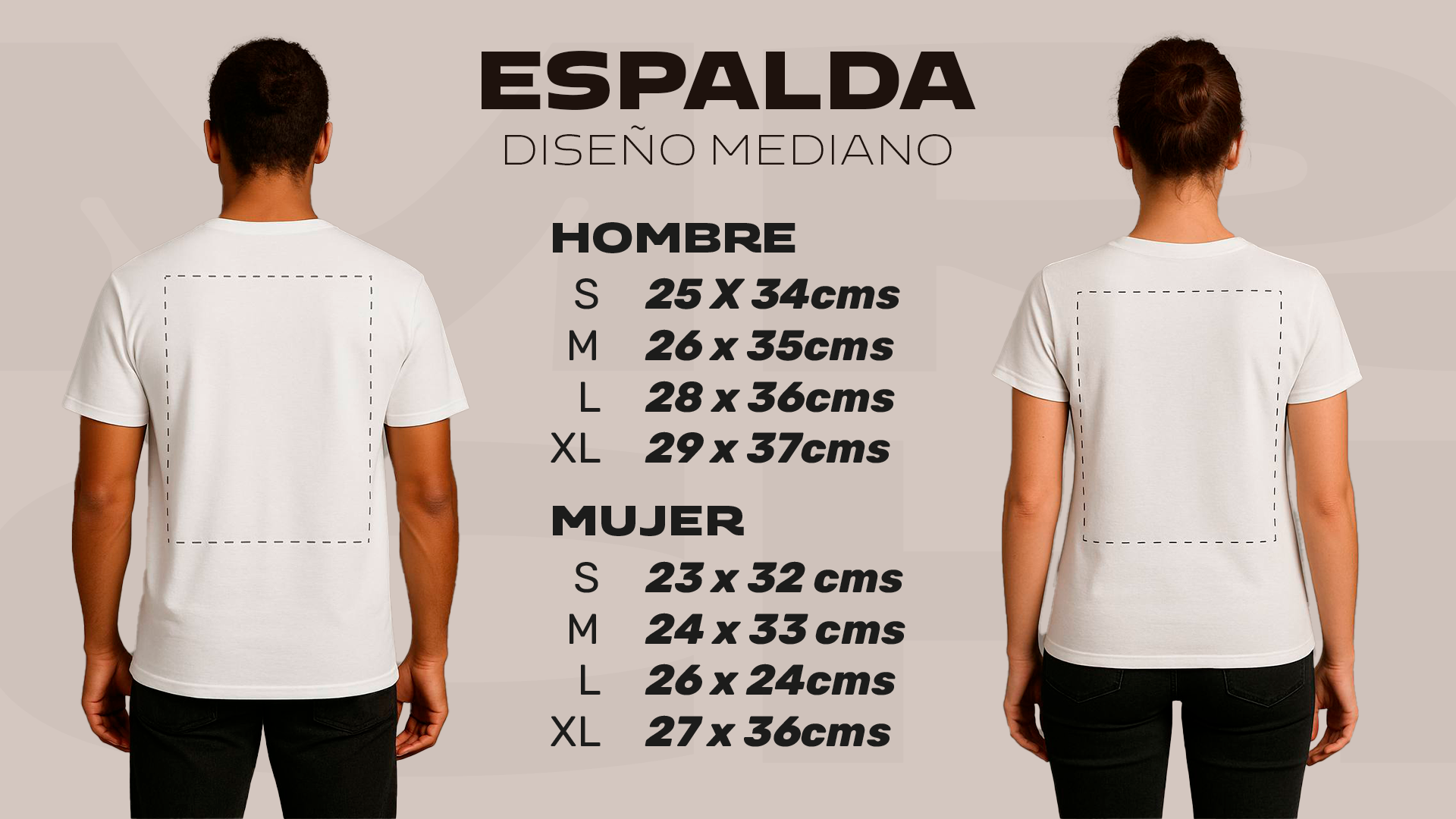 Selecciona tu talla y el tipo de diseño (frontal o espalda).