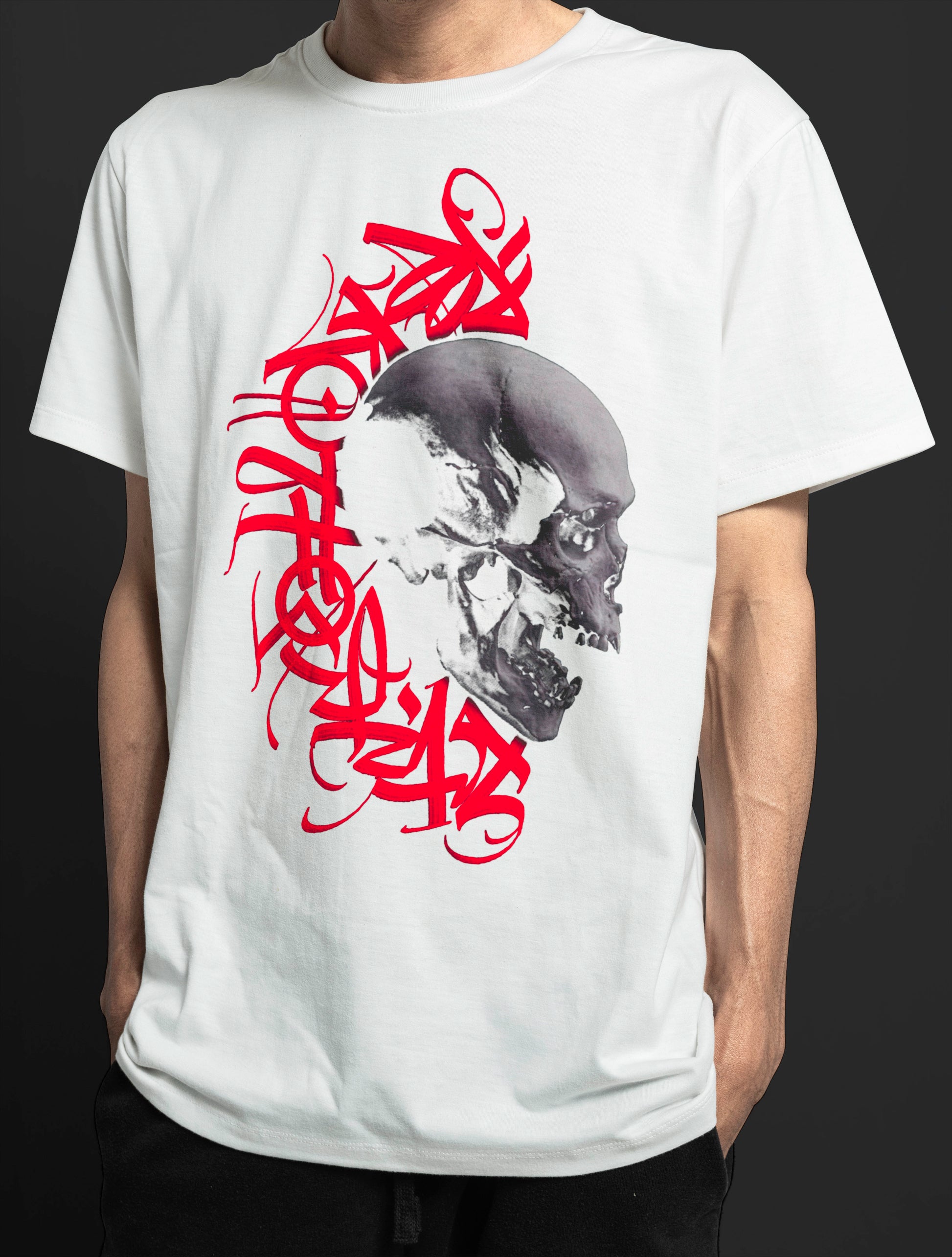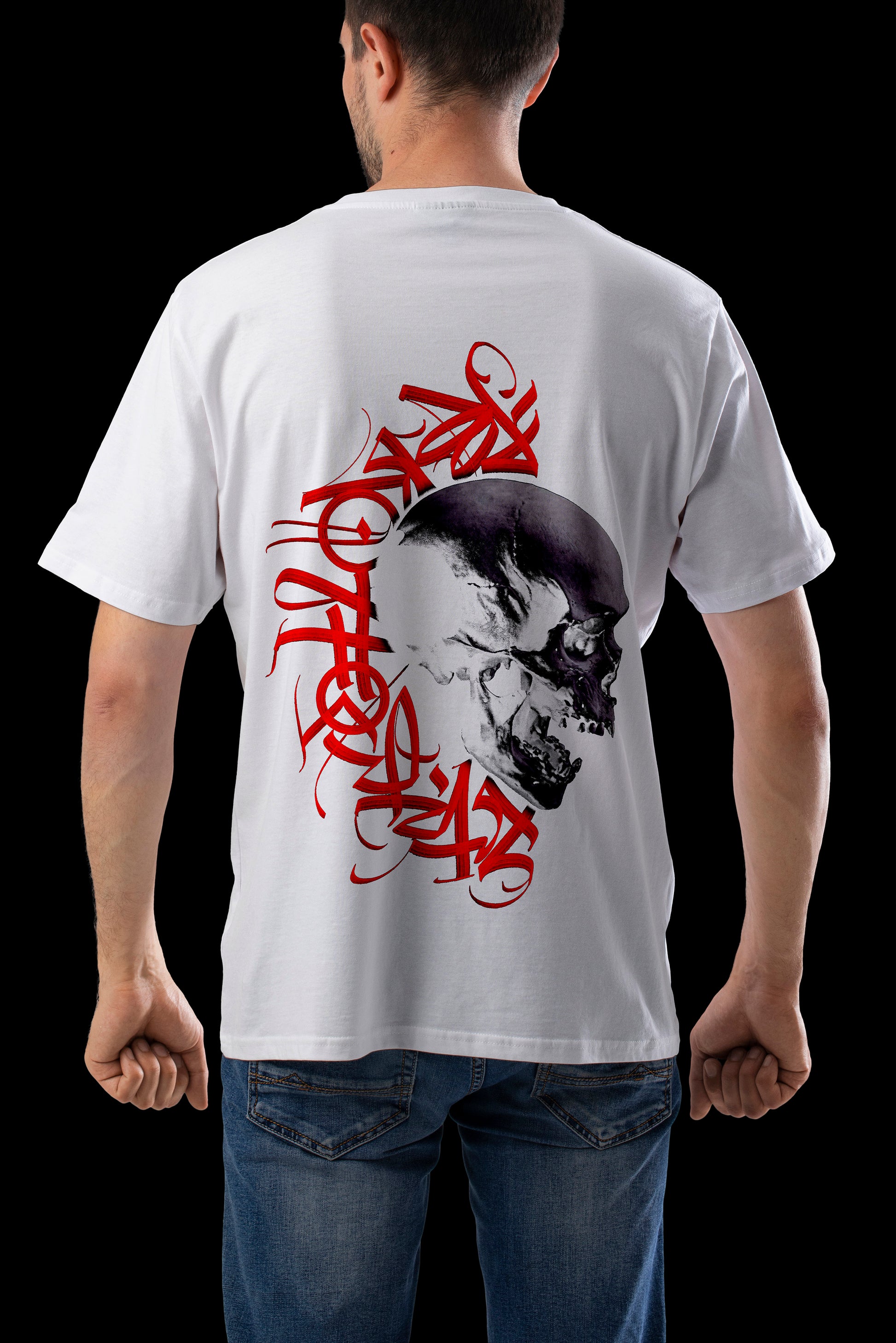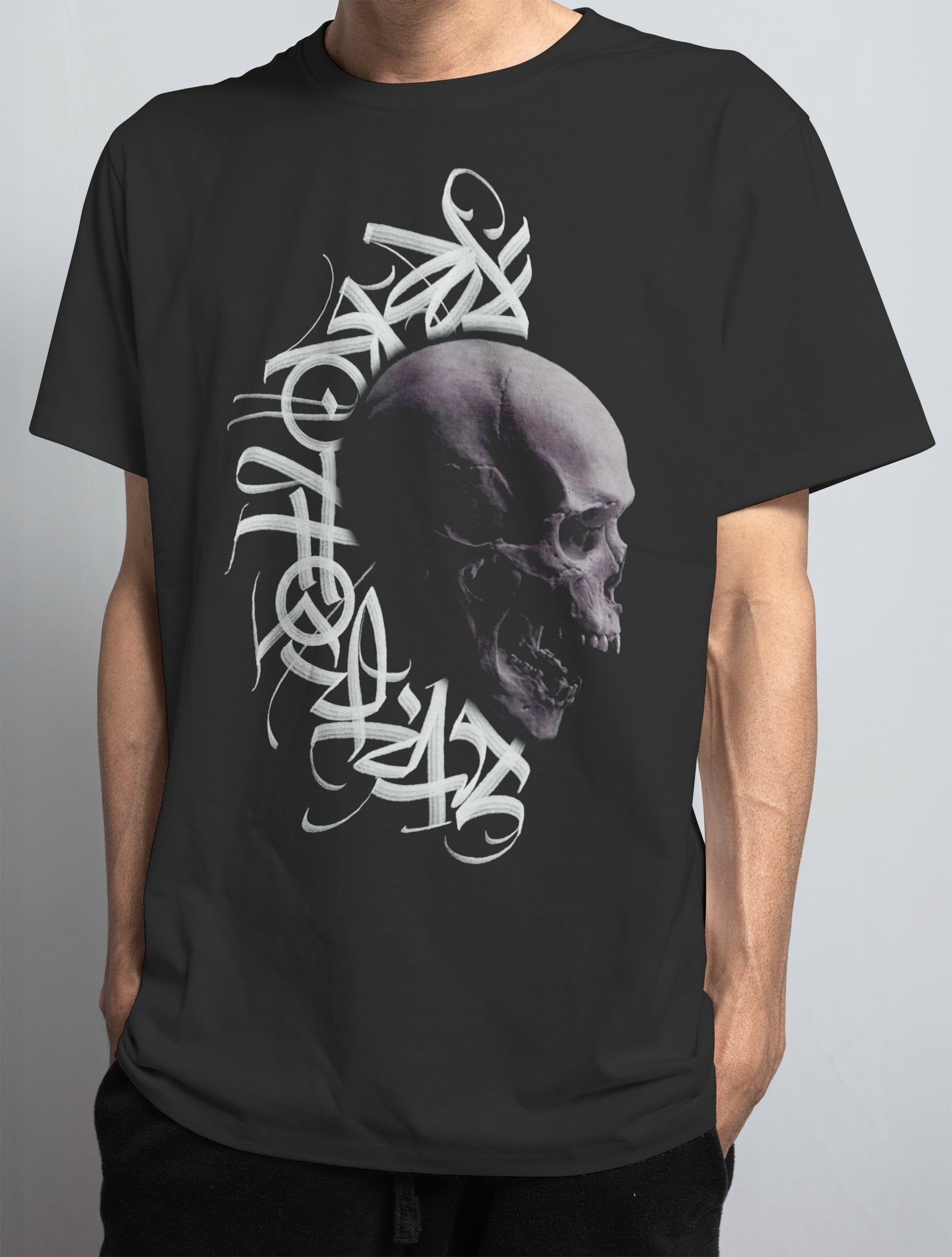 La playera “Craneo Ink – Arte Urbano” es una fusión brutal entre el arte callejero y la estética dark contemporánea. El diseño combina una calavera hiperrealista en tonos grises con caligrafía roja estilo graffiti, creando un contraste visual potente que evoca rebeldía, actitud y cultura underground.