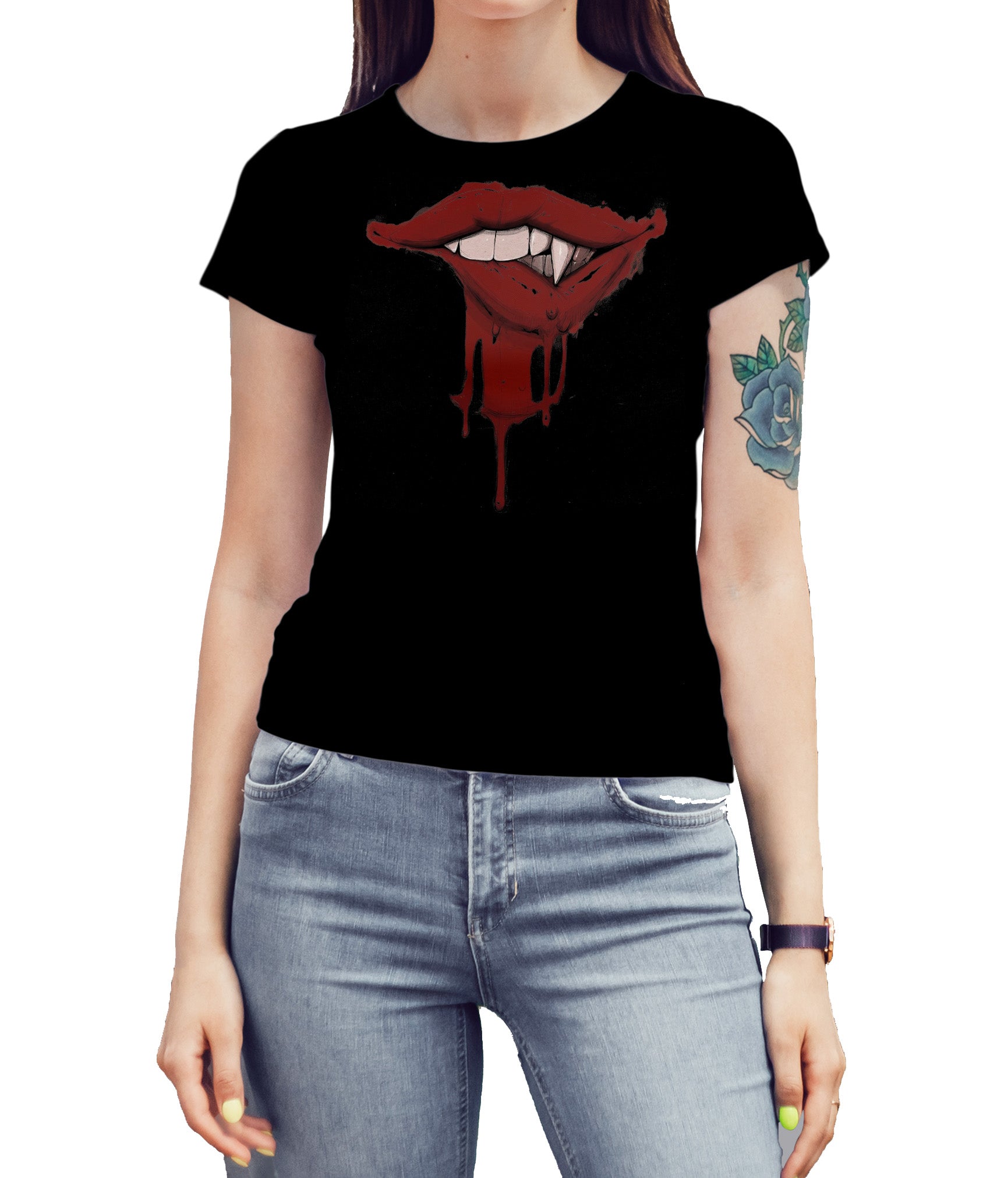 Atrévete a destacar con la playera “Bloody Bite”, una prenda que mezcla sensualidad y oscuridad con un diseño impactante: unos labios rojos brillantes con colmillos y gotas de sangre que evocan un aire de misterio y rebeldía. Perfecta para quienes aman el estilo gótico, vampírico o alternativo, esta playera convierte cualquier outfit en una declaración audaz.