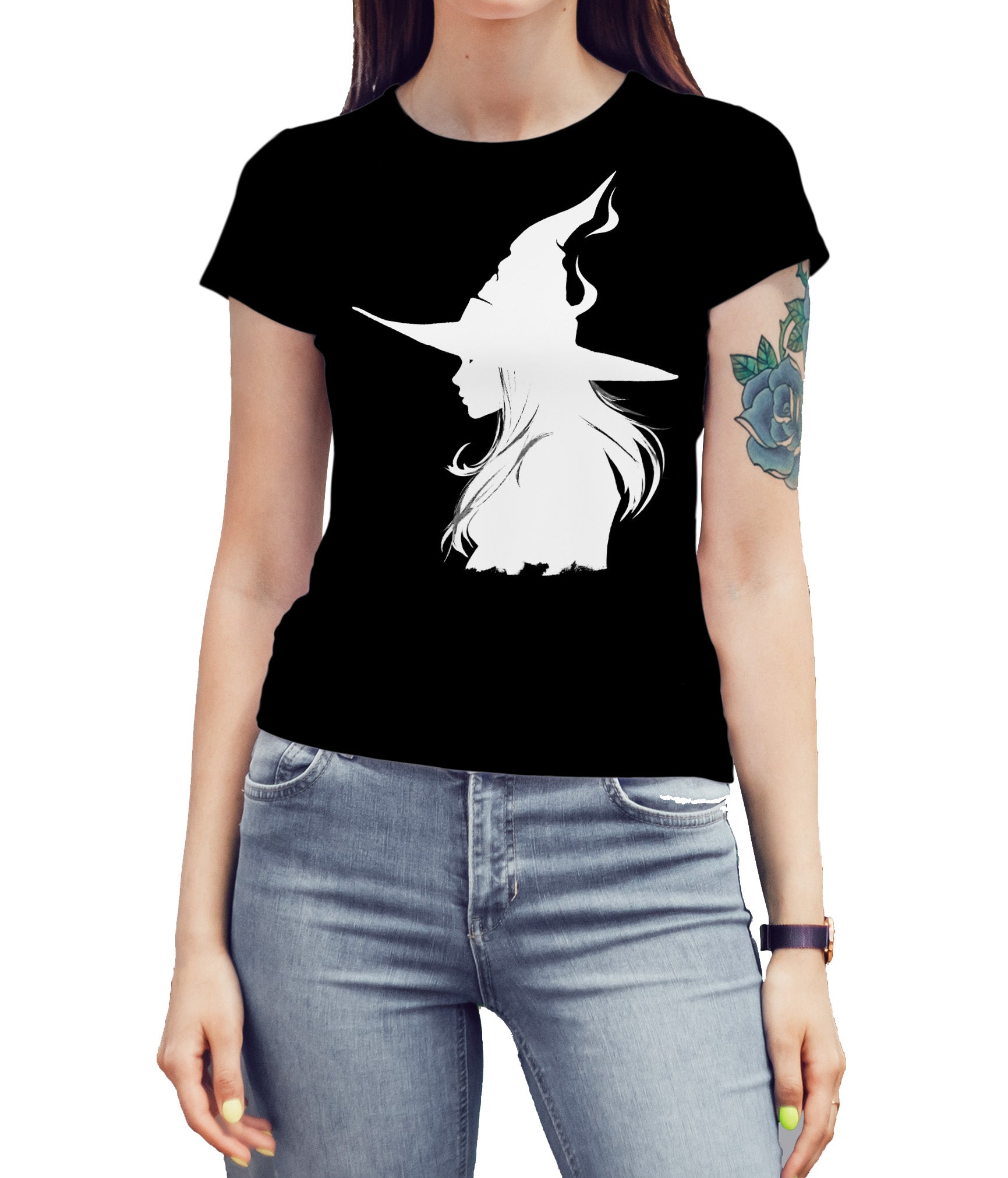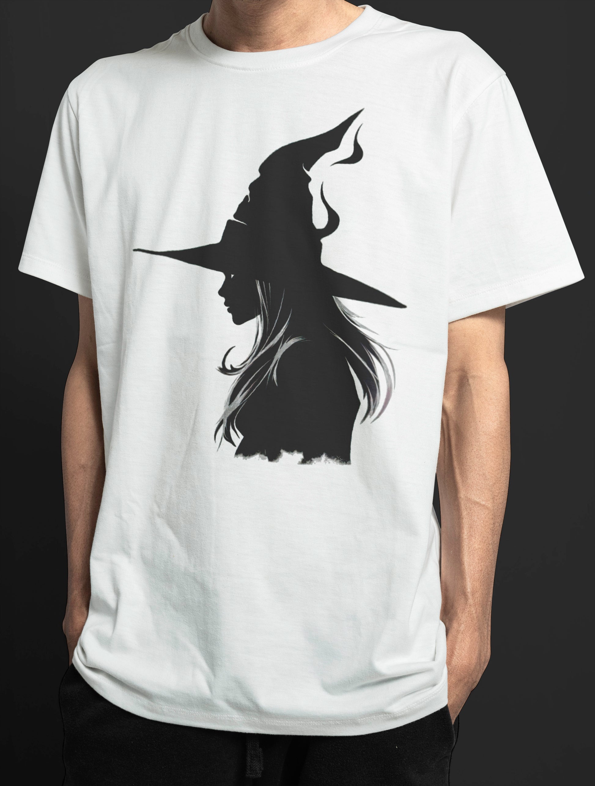 La playera “Witch Silhouette” presenta una ilustración en negro de perfil de una bruja con sombrero puntiagudo, combinando minimalismo y poder femenino. Un diseño limpio pero lleno de energía mágica, ideal para quienes aman el arte oscuro, la estética witchy y los looks alternativos con clase.